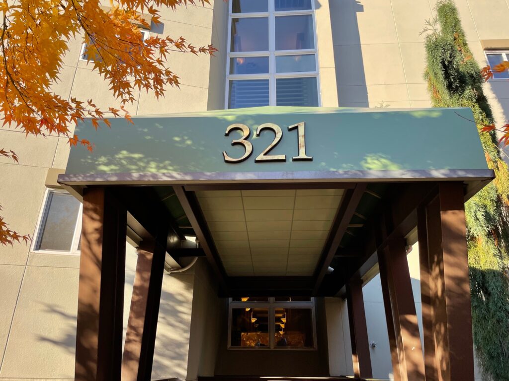 This entrance canopy was showing it’s age and ready for a refresh. We were able to give it a new life by replacing the existing cover with a new one made from