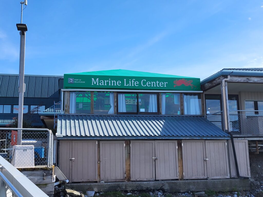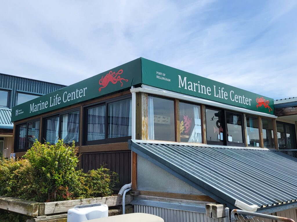 Some jobs are more custom than others. Check out our recent installation of a new cover at the Port of Bellingham marine life center. To create the cover we carefully measured the existing metal framework, located in Bellingham, and then constructed the cover at our shop in Seattle. Installation took one day and our crew worked quickly to ensure the sea creatures weren’t in the sun for too long.