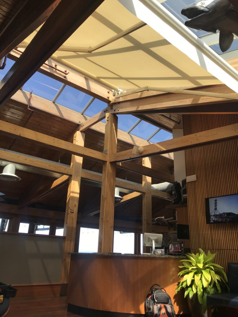 Indoor awnings don’t always serve a purpose other than aesthetics, but sometimes they are the most practical choice. In the case of Ray’s Boathouse, their dining space needed shade but the rafters in the building were not square, which meant more traditional methods would not work. Our solution: this Select awning by Stobag, which looks beautiful in the space and keeps the sun out of patron’s eyes.