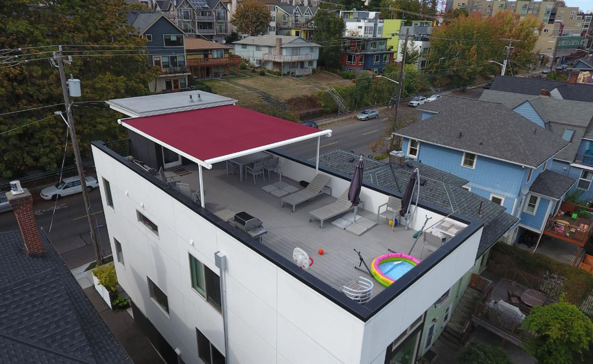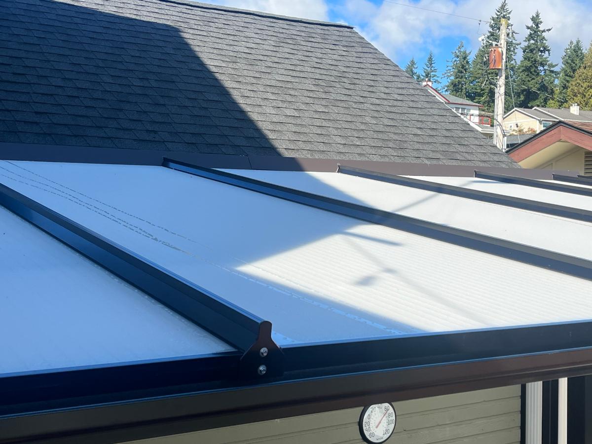Solid roof construction provides complete protection from rain, snow, and sun